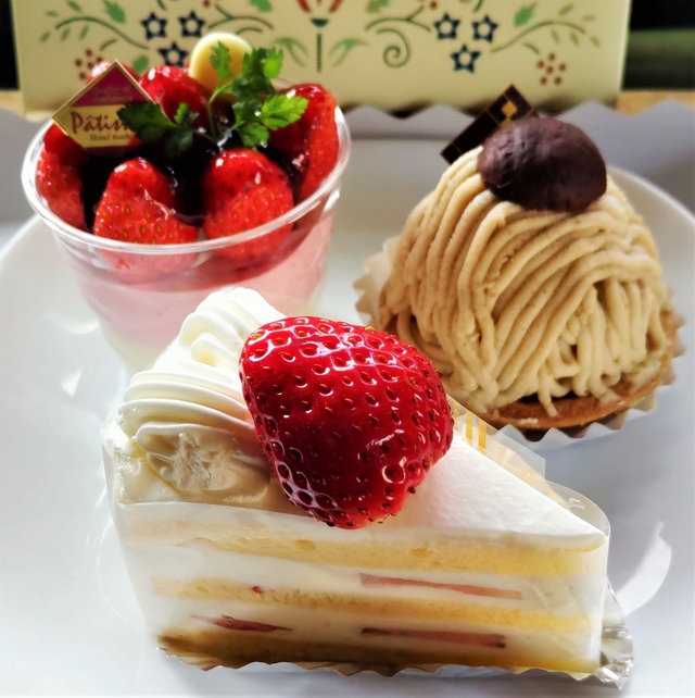 3種類のケーキを購入しました。 イチゴのショートケーキ(420円)、苺のムース(430円)、和栗のモンブラン(450円)。 どのケーキも少し小ぶりですが、500円以下の価格はうれしいですね。 午後1時半過ぎに訪問しましたが、イチゴのショートケーキは1つしかありませんでした。 定番の商品なので、人気なのでしょう。休日には早めの訪問がよさそうです。