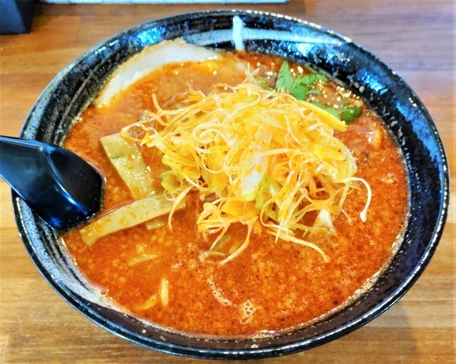 《辛味噌ネギらーめん》950円 白(塩)、黒(醤油)、ゴマ担々麺、漁香、辛味噌、つけ麺とメニュー豊富なお店。 何を選んでよいか迷いましたが、味噌が好きなので、辛味噌を選択しました。 なかなかの辛さのスープで、麺は太麺で、おいしかったです。 おすすめはメニュー最初のページにある『白(塩)』かもしれません。