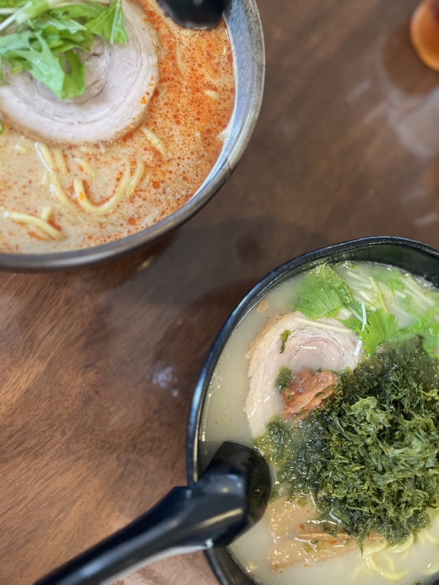 梅白岩のりらーめんとごま担々麺を食べました。スープは絶品!ですが、、、麺をすするとあれ?ってなります。太麺よりちぢれ麺の方が合うのかなぁ?