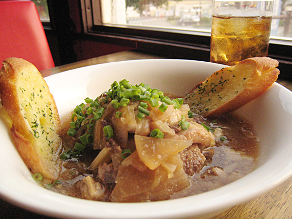 たがばるのイチオシ “牛すじ大根の煮込み”です。ガーリックパンと一緒にどうぞ!