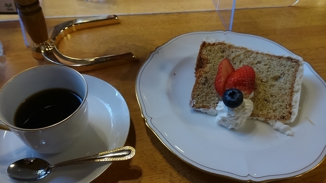 シフォンケーキ(あずき)とヨーロピアンブレンドコーヒーのセットをいただきました。 上品な甘さのシフォンケーキにコーヒーがよくあいます。 サイフォン式のコーヒーは、カップ2杯分あるのもうれしいです。 至福の時間をありがとうございます。