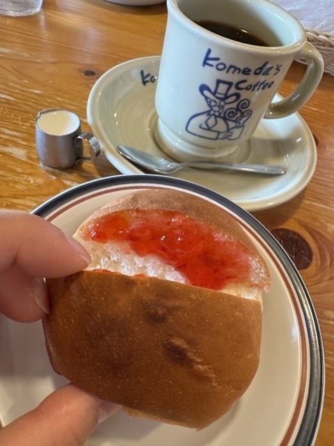 モーニングの時間帯にドリンクを頼むと、無料でモーニングが食べられます!ロープパンにいちごジャムが塗ってあるものがおいしかったです!