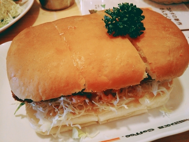 えびかつサンド♪ あつあつでさくさくぷりぷりでとっても食べごたえのあるサンドでした!! サウザンソースもおいしかったです☆