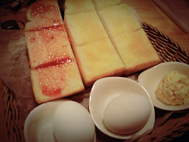 行くたびに、今日も混んでいるなぁと感じる人気喫茶店。軽い昼食をということで、サラダバゲットとたっぷりミルクコーヒーを注文しました。コーヒーには豆菓子袋が付いて来るとか、ミルクコーヒーはカフェオレよりも牛乳の割合がずっと多いので、牛乳の膜ができて来るのが、良い意味での特徴ですね。サラダバゲットは見た目のバランスも良く、バゲットのスライス2個、ゆで卵1個分のスライス、ポテトサラダ、キュウリ、トマト、レタスで、軽食としては満足。新聞雑誌も多く備えてあるので、一度入るとつい長居しがちです。