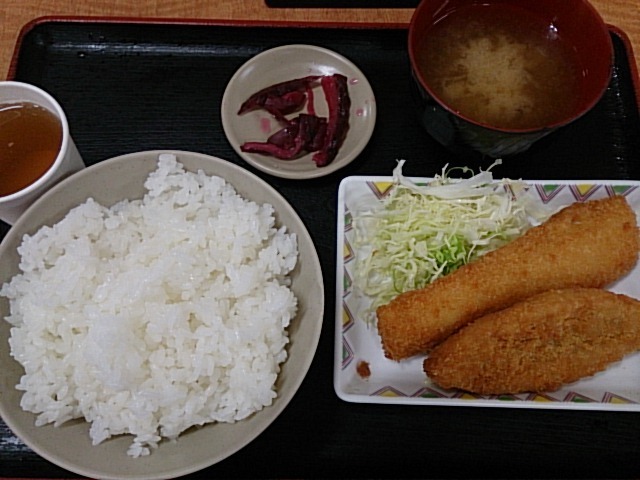 水曜dayメニューを!! フライなので揚げたてサクサクはぃぃけど、此方も一回り小振りになった印象を承けました…気のせいかなっ?!