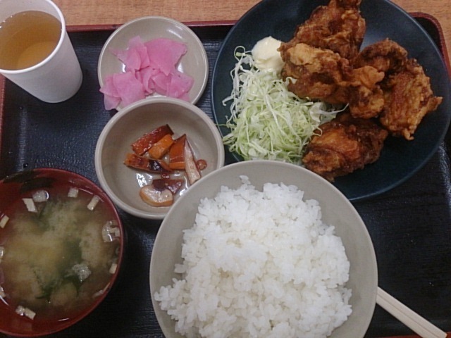昼時タイミング合わず夕方に~ 昼飯兼、晩飯也♪ 水曜dayメニューはまぁいいとして、お薦めメニ ュー唐揚げは仕上がり具合はカリッ,ジュワーは良かったが一回り小振りな印象で…
