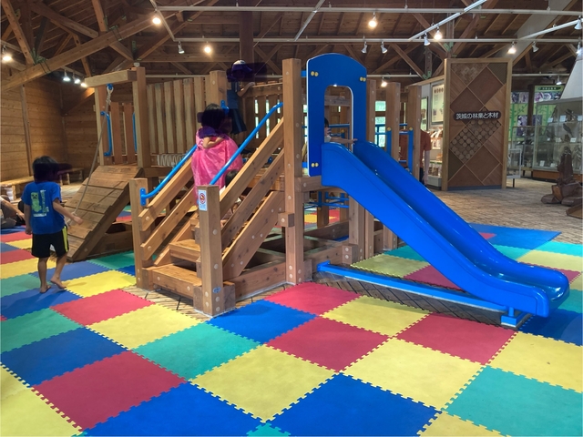 隣接している「森のカルチャーセンター」へ行きました。植物園の入り口の奥なのでわかりづらいかもしれません。無料で入れて、屋内にちょっとした遊具(滑り台)、木のおもちゃなどがあり遊べます。フクロウやクジャクなどもいます。