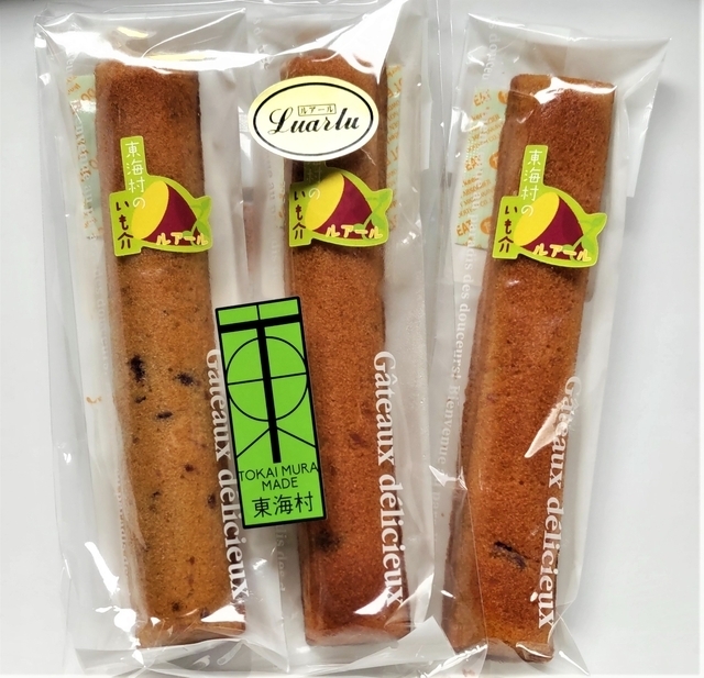 《東海村のいも介》1本\150 東海村おすすめセレクションに認証されている焼菓子。 東海村で作られたサツマイモ(紫いも、紅あずま)を使っています。 あまり知られていないので、ちょっとした手土産におすすめです。