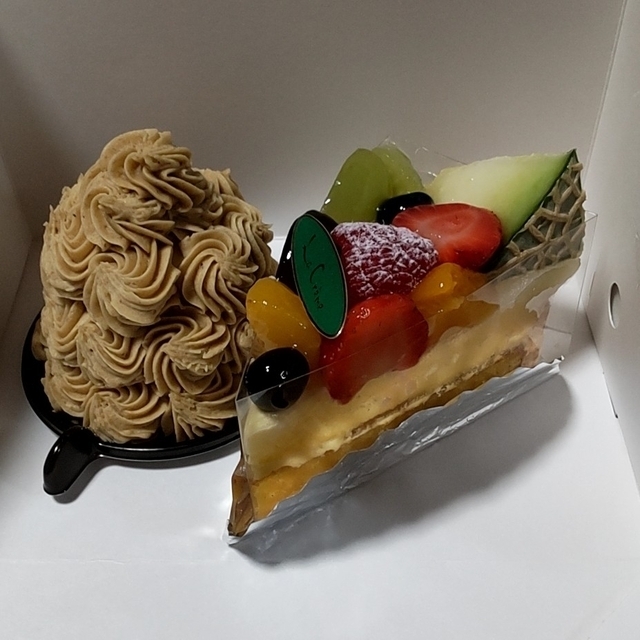 【くり~むオリジナルモンブラン】680円 栗を使ったケーキが数種類並んでいる中から、オリジナルモンブランを購入しました。 表面のマロンクリームは、バタークリームとブレンドされ、やや堅めです。 中の上部には、小さくカットされた果物が入ったクリーム。 下部にはマロンクリームが入っていました。 とてもおいしかったです。