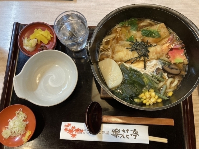寒い冬にぴったりな鍋焼きうどんをいただきました!海老天にかまぼこなどスタンダードな具材で、うどんは柔らかめ。シンプルにおいしい!