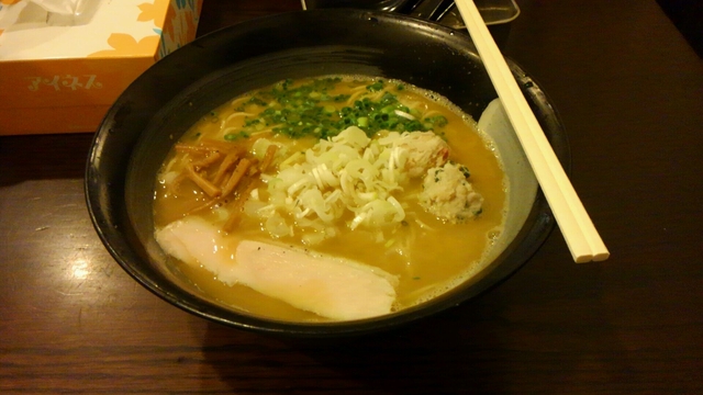 先に並んでいた人3名、後客多数。 今日は仕事でつくばへ。 お昼は知り合いから勧められていたこちらのお店へ。 純鶏白湯醤油をオーダー。 待つこと約5分、着丼。 具はメンマ、鶏つくね二個、鶏チャーシュー二枚。 まずはスープ。 クリーミーです。 濃いですが、くどさはない。 麺は細麺ストレート。 スープがよくからみ、旨い。 あっさり完食し、替え玉80円をオーダー。 替え玉にも、少し味付けしてくれるのが嬉しい。 ごちそうさまでした。 再訪ありです(^o^)