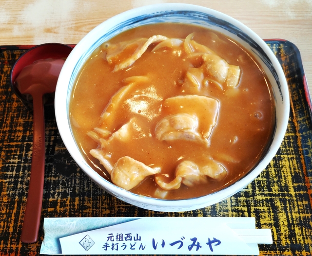【カレーうどん】 小さな店舗なので、平日11:30ですでに入店待ちで、約30分待ちました。寒い日だったのでカレーうどんをいただきました。久しぶりにいただきましたが、スパイシーでおいしく、体も温まり、極太うどんでお腹も満足できました。(730円) 辛さに強い方には激辛カレーうどんもあります。