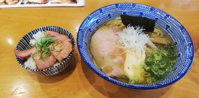 初来店で名古屋コーチン鶏そば塩と まかない飯 を食べました。 最近淡麗系のラーメンばかり食べています。 選べるチャーシューは低温チャーシューをチョイス! 澄んだスープにベストマッチです。 汁完しました。