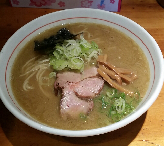 以前からいつも行列が出来ていたので気になっていましたが、最近落ち着いたようなので初訪問。 メニューの豊富さと券売機の分かりづらさが相まって少々パニック…。 商品名忘れましたが、写真のドロ系をオーダー。 チャーシューは5種類から選択できるので、バラ肉を選びました。 麺はかなり太めで食べ応え十分。十分過ぎて珍しく残してしまいました。 これだけ種類があると次はあれ食べたい、とリピートしたくなりますね。