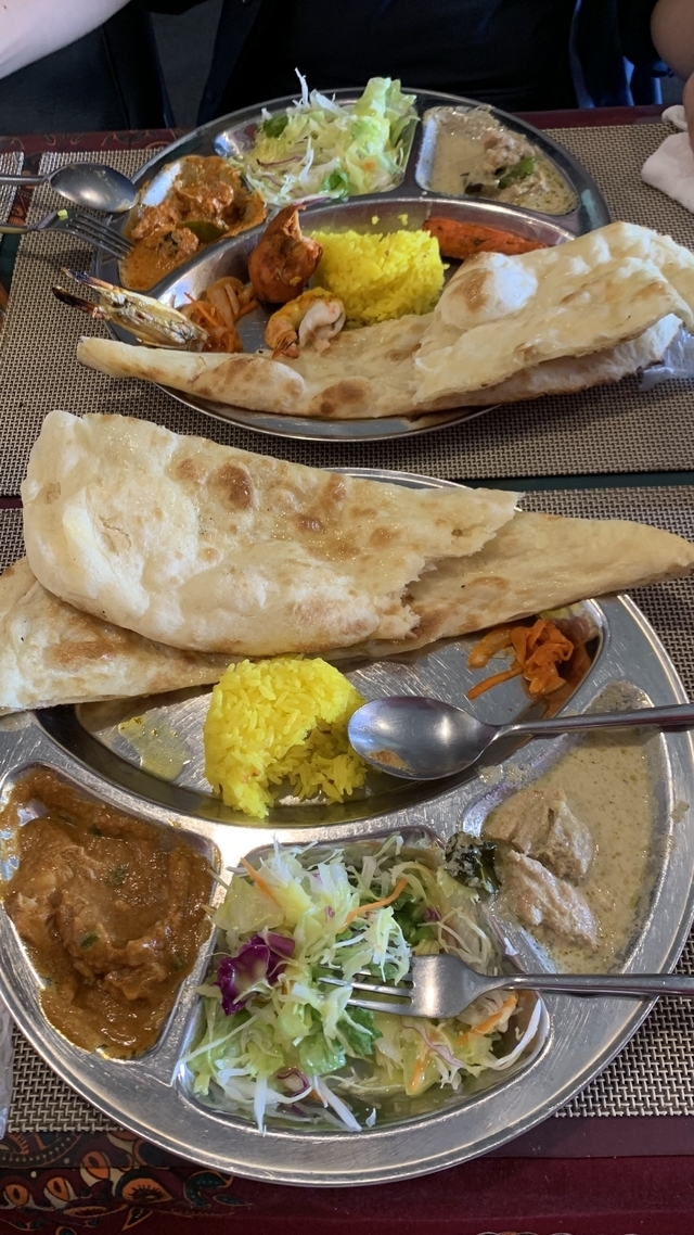 土曜日の午後2時半頃、はじめてお邪魔しました。土日祝のランチタイムが長いのがありがたいですね!(夕方5時まで) タンドリーセットとレディースセットをいただきました。グリーンカレーもチキンカレーも とてもちょうどいい辛口でした。ナンは、ふわっとしたところも カリカリしたところも どちらも美味しく、ナンだけでも最後まで楽しめました☺ また食べにきたいなと思いました! (食べはじめてからの写真ですみません)