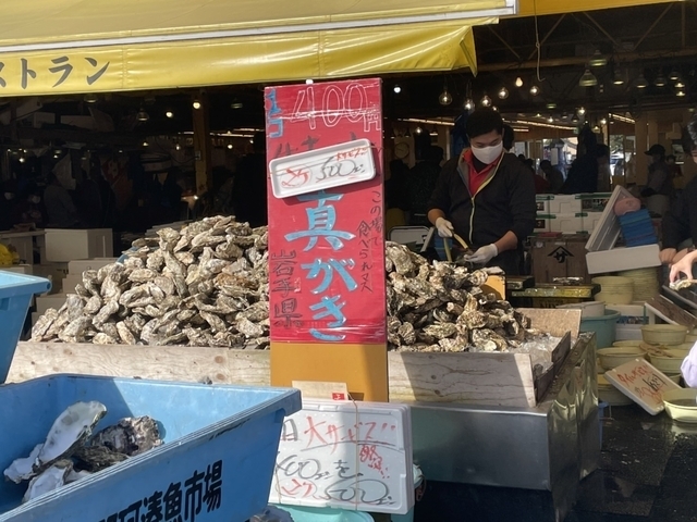 久しぶりに那珂湊おさかな市場に来ました、日曜なのでとても賑やかです。 生牡蠣初めて挑戦しました、甘くて美味しいです!