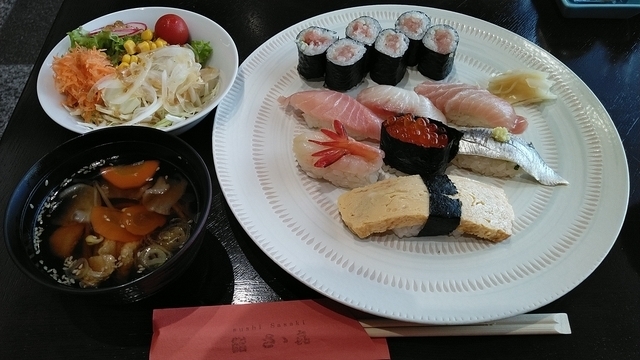 ずっと前から、行きたいと思っていました。岩手県出身の職人さんが、握るお鮨です。土日もランチをやっています。Aランチを注文。サラダ・にぎり(並)・岩手県のすいとん「ひっつみ」とっても美味しくて、店内の雰囲気も素敵でした。また食べに行きたいと思います!!