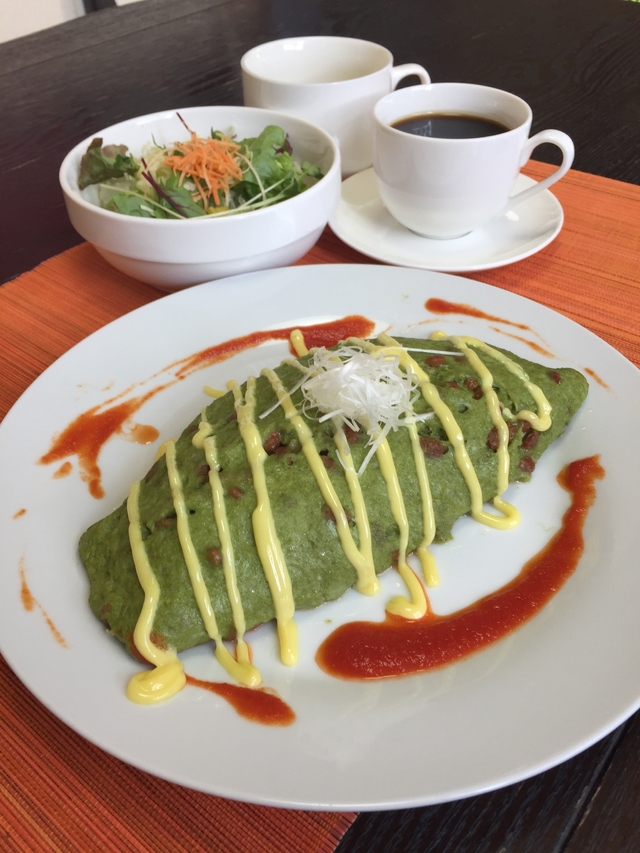 いつもご来店ありがとうございます。納豆使用のメニューが完成しました。ほうれん草のペーストと納豆を卵で混ぜ合わせ、オリジナルのそぼろライスをふんわり包み、からしマヨネーズでアクセントで納豆好きにはたまらない1皿に仕上げました。是非1度ご賞味ください。