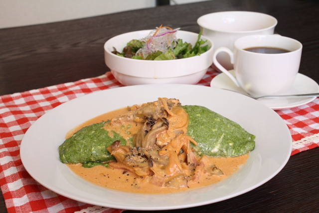 いつもご来店ありがとうございます。ソースで食べるオムライスを中心に12種類取り揃えております。オムライスが食べたくなったら、とら吉に来てくださいね。ご来店お待ちしております。写真は人気メニューの「きのこトマトクリームソースのポパイオムライス」