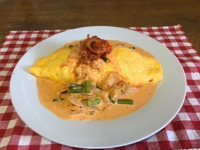 いつもご来店ありがとうございます。ソースで食べるオムライスを中心に12種類取り揃えております。オムライスが食べたくなったら、とら吉に来てくださいね。ご来店お待ちしております。写真は人気メニューの「クリームキムチオムライス」