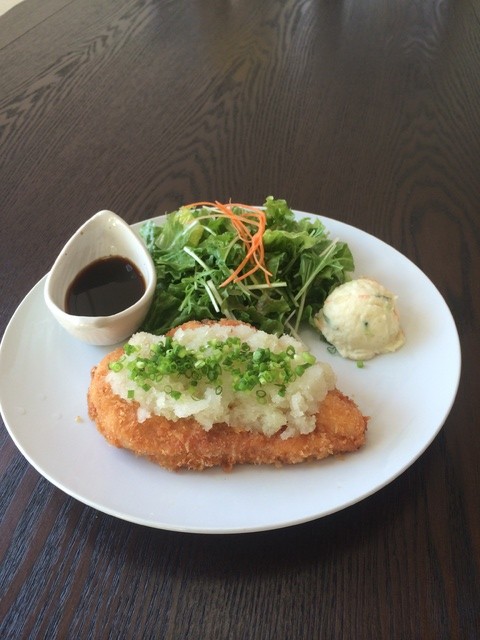 ランチに行きました。おろしチキンカツと生姜焼きを注文して、母と二人でたべました。ランチのスープとご飯がついて、ボリュームまんてんでとっても美味しかったです。駐車場は近くにセブンイレブンがあるんだけど、そこの斜め裏にありました。洋食屋だけど、品数がいろいろあって楽しいです。やきとりやもつ煮込みもあったり、オリジナルのカルボナーラや、茄子のグラタンもありました。今度はディナーで行って、お酒をのみたいな…次回が楽しみ、楽しみ…