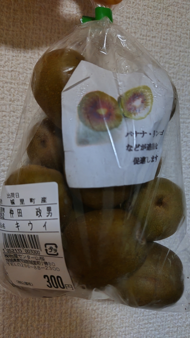 キウイを購入しました。やや小さめのキウイがこんなにたくさん入って300円は大変お買い得です!食後のデザートにちょうどいい。程よい甘さで、とても美味しかったです。