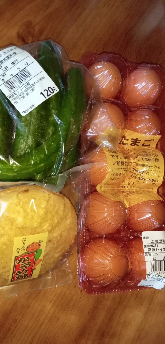 そば処で食事後、買物をしました。きゅうり・かるめ焼・平飼いたまごを購入。リーズナブル価格で嬉しいです。ずっとかるめ焼が食べたいと思っていたので、ここで買えて良かったです。