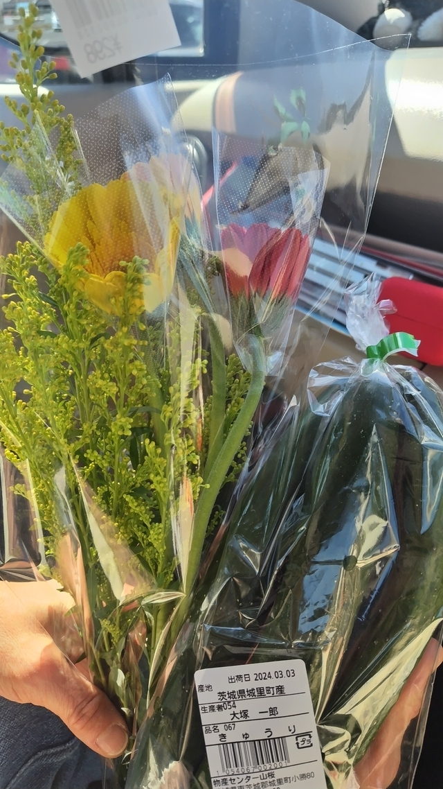 新鮮なきゅうり!農家さんの名前の記載があり、安心です。とっても新鮮でちくちくしたきゅうりで、美味しかったです。季節を感じられるお花です。ハッピーな気持ちになります!