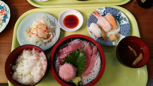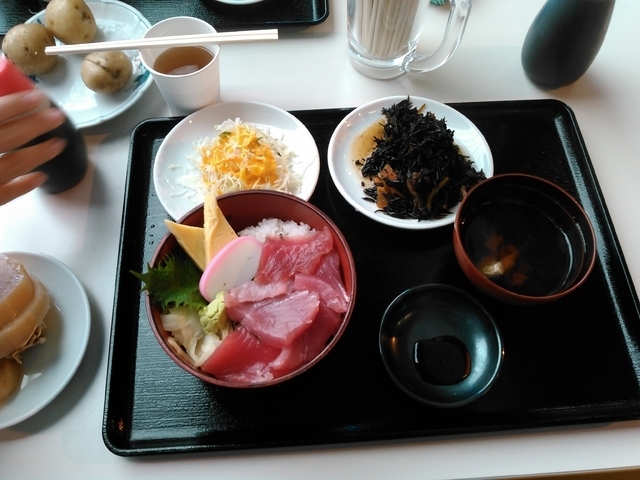 やっと行ってきました。 桜土浦インター近くにあります、外観は狭そうですが中はけっこう広いです。 マグロの漬け丼500円にしました。マグロは筋なくおいしいです。 サラダやひじきの煮物やジャガイモ蒸したやつ、漬物、味噌汁がお代わりし放題。 こりゃー、コスパ高いわ。座席は市場側だと屋根はあるけど屋外とあまり変わらない状況なので これからの季節、上着は必ず来ていきましょう(笑)
