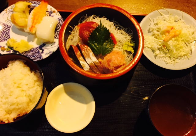 ずっと行ってみたかったけれど行ったことがなかった魚市場。平日11:30頃に行きましたが、座席は沢山あるので待たずに座れました。海鮮丼800円。サラダや大根の煮物、魚の煮物などは食べ放題。お魚たっぷりいただきました。満足です!背後に魚市場を感じながら新鮮な定食、美味しかったです。
