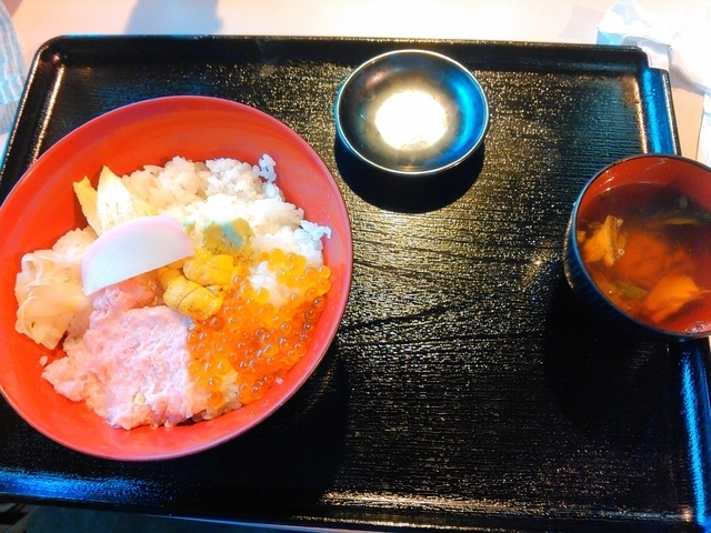 年内最後の営業日にまた行ってきました。 今日は、うに、いくら、ネギトロの三色丼。 大分、見本と違うのは仕方ないか。この季節だと丼ものの酢飯が冷えてしまうのが早くて残念。 次は刺身定食にしてみようかな。