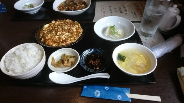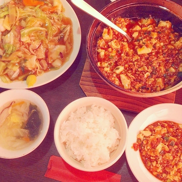 「ここの陳麻婆がうまい!!!」と噂を聞きつけ、いざ訪問。 メニューを見ると、普通の麻婆と陳麻婆とがあるようですが、ここは陳麻婆をオーダー。 ご飯にスープ、漬け物に小鉢プラスメインの陳麻婆がテーブルに。 麻婆は一見少なく見えますが、レンゲが半分くらい埋もれるような皿に盛られてボリュームたっぷり。 一口食べると、山椒系のピリリとした辛さが口いっぱいに。 その後、11月だというのに汗が噴き出てきます。 個人的には辛さには弱いのですが、辛い料理が好きな私。 そんな私の感想は、「辛いが後引く辛さ」です。 ご飯もお代わり自由なので、味も量も大満足。 後で聞きましたが、ここのお店は担々麺も美味しいらしいので、今度はそちらを頼んでみます。