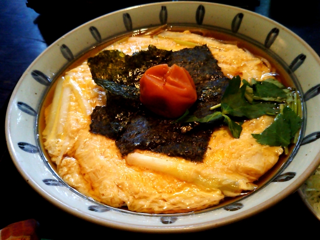 寒かったので暖かいおそばを食べました☆ 梅卵とじのおそばです♪ ふわふわの卵の上に大きな梅が♪♪ とってもおいしかったです