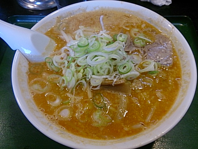 ●みそラーメン 800円 約5分で着丼。 大盛り無料だったが、普通でもボリュームあり。 スープはとんこつベースの味噌。 一口のむが、思ったほど濃くは無いので飲みやすい。 香ばしさと風味がいい味をだしている。 麺は自家製麺で、中太麺。 味噌には一番あうふとさかな。 トッピングには、ネギ・チャーシュー・もやしが大量。 途中から、麺を食べているのか、もやしを食べているのかわからなくなるぐらい。 そして最後まで熱々で食べられるのが特徴。 久々の味噌ラーメン。美味しくいただきました。