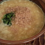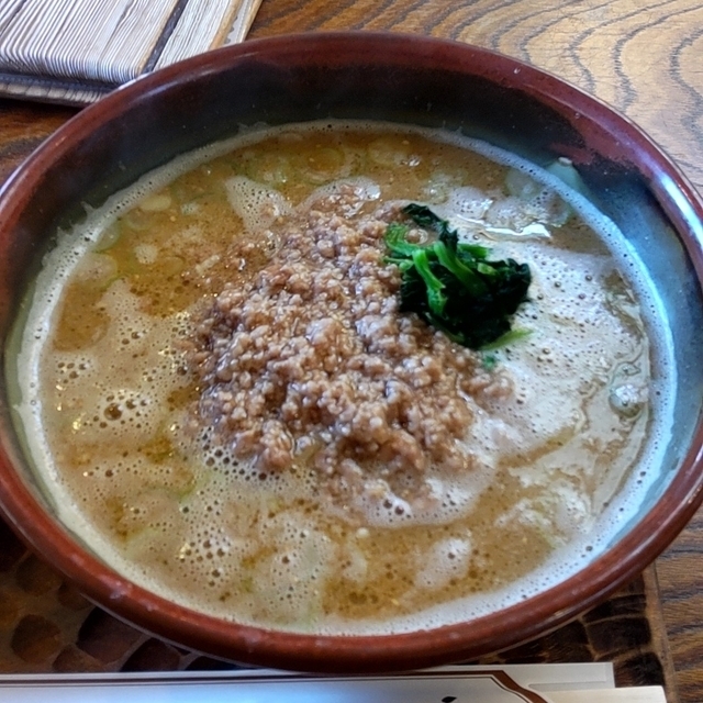 ●胡麻らーめん990円 麺は自家製ストレートのやわらかめ。 スープは醤油ベースに 胡麻と挽肉が入り風味をます。 辛くない担々麺といったところでしょうか。 これはこれで美味しく、 スープも飲み干しました。