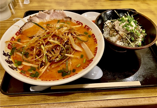 夜に伺い辛ネギ味噌ラーメンとチャーマヨ丼を食べました。中辛にしましたが私には結構辛めでした。味噌が濃厚でとても美味しかったです。