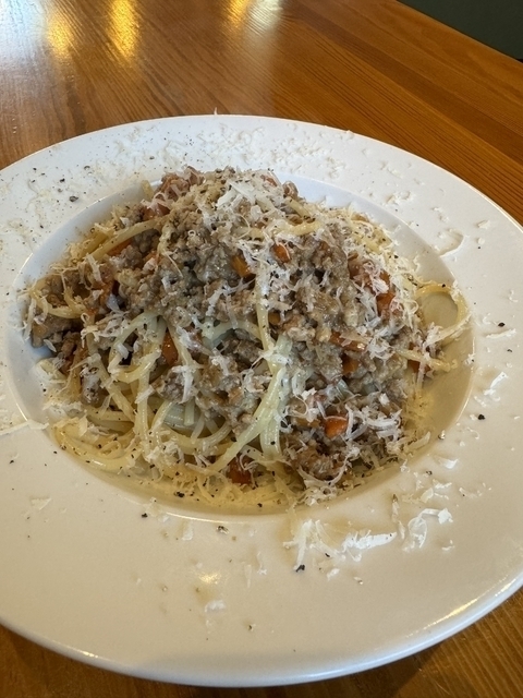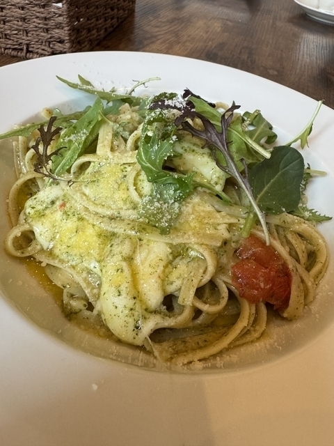ジェノベーゼパスタをいただきました!リングイネという少し平打ちの麺で、オリーブオイルがたっぷり絡んでおいしかったです!