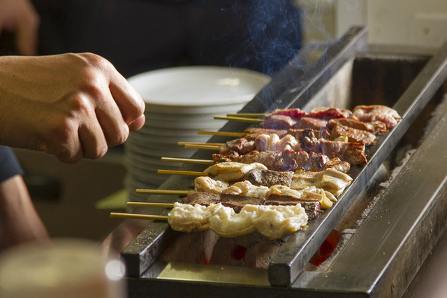 炭火でじっくりと焼き上げる豚もつの串焼きが高嶺の名物です!