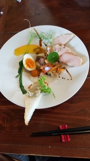 自家農場、自家製生パスタ、自家製酵母のパン、無添加など拘りの伝わる料理でした。 ランチは、1600円と2600円(税込)のおまかせのコースだけです。 酵素シロップのハーブティー、ピクルス盛り合わせ、前菜盛り合わせ。パスタ。デザート、コーヒーがついて1600円でした。 更にお肉料理がつくと2600円です。