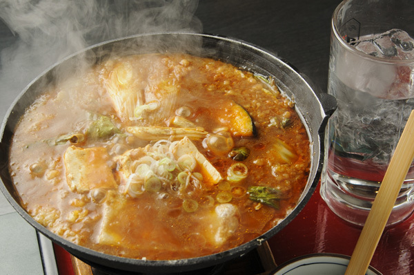 人気の味噌煮込みうどんはコンロにかけてご提供します。熱々をどうぞ!