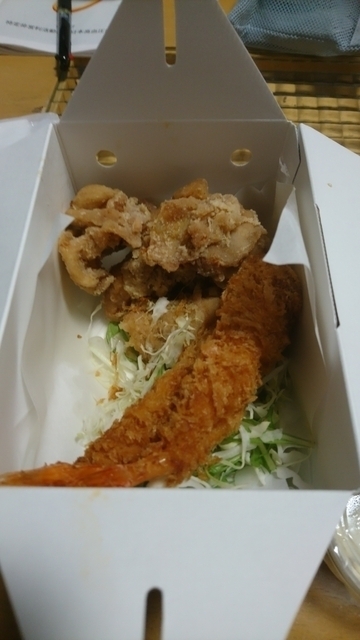 テイクアウトのメニューが少し変わったそうで、今回は、エビとりボックスという、エビフライ2本、唐揚げ五個が入ったものをいただきました。 おつまみにぴったりで、次回もまた頼みたいですね。