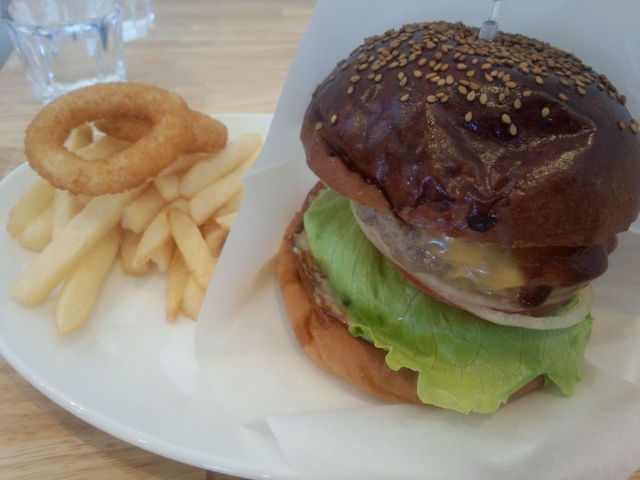 今回は一番人気のチーズバーガーを注文。 注文を受けてからバンズもパティも焼き上げてくれます。待っている間に良い香が漂ってきて期待が膨らみますね(^^) 出来上がったハンバーガーが運ばれてくると、まずボリュームにびっくり!どうやって食べよう・・・ってなります(笑)もちろんフォークとナイフもあるのでデートでも安心です!味ももちろん◎!味がしっかりしたバーベキューソースで、きっと万人受けする味。 さらにおすすめしたいのが、サイドメニューのスイートチリソースとサワークリームがのったフライドポテト!! 甘酸っぱくて、止まらなくなります。ハマります。ぜひ。