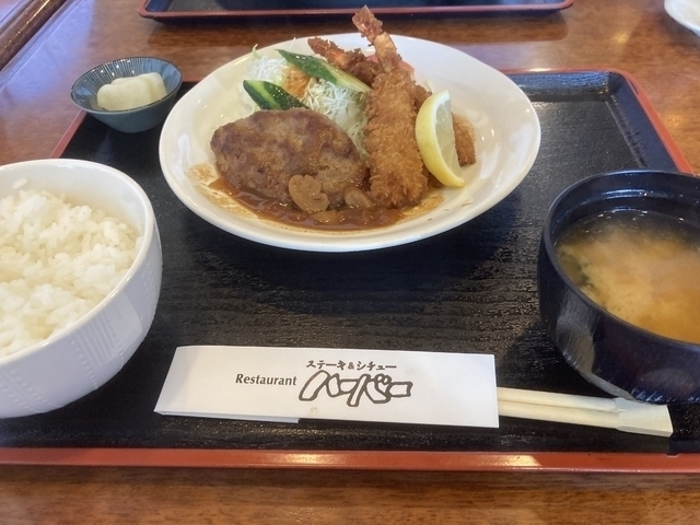 地元の洋食屋さん。ランチを注文。ハンバーグも手作り、エビフライも既製品では無さそうです。胃に優しい洋食。美味しかったです。