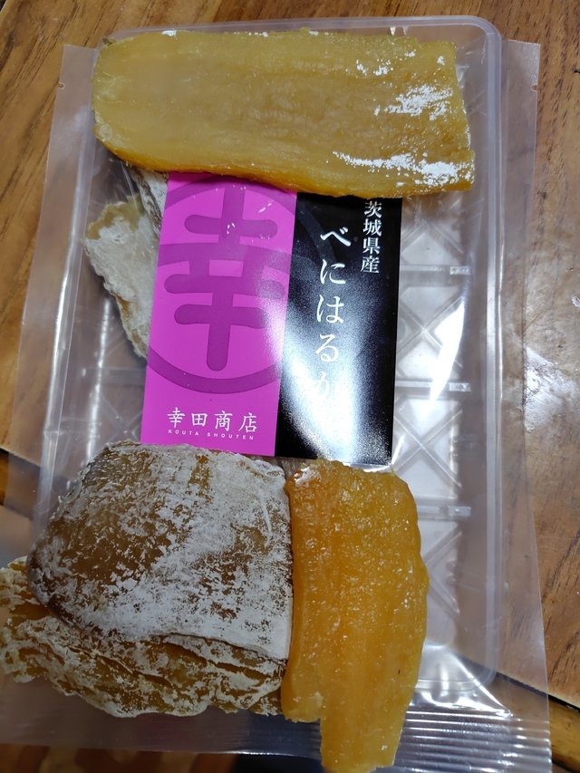 知人から幸田商店の干し芋をいただきました。茨城県は、干し芋生産量、全国の90%を占める一大生産地です。ちょっと歯にくっつきますが、栄養価高くあとひくおいしさです。 レンジであたためても柔らかくなっていけます。