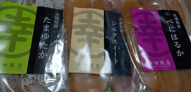 ひたちなか市の干し芋製造で有名なこちらのお店。「べにはるか丸干し」を購入しました。こちらの製品も、黒っぽくかなり固いというイメージのあった従来の干し芋とは全く違うもので、半生でやわらか、しっとりして甘過ぎない上品な甘さで美味しいです。