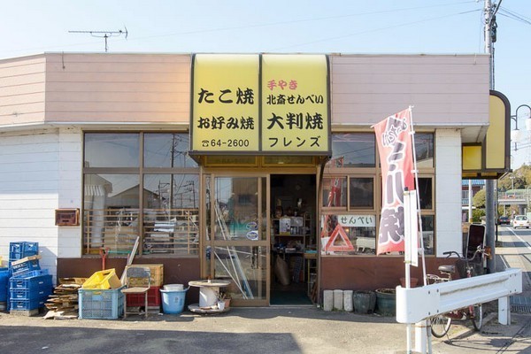 北利根川橋そばの『フレンズ』は、やきそば・たこ焼きなどのファーストフードと大判焼き(今川焼き・太鼓焼きともよばれる)のお店です。店主が1枚1枚丁寧に焼いている「北斎せんべい」も販売しています。炭火にこだわった香ばしいお煎餅をぜひどうぞ!