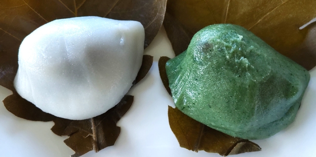 【柏餅】 「ちまき」で知られているなべやさんですが、この時期柏餅も店頭にありました。 柏餅は、こしあん、よもぎ粒あん、みそあんの3種類あり、こしあんとよもぎ粒あんを購入しました。餡が多く、生地も柔らかく、おいしくいただきました。(160円)