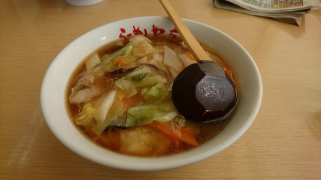 2018.11.30(金)13:05訪問。 先客五組、後客。 少し遅めのランチをこちらで。 いつもは味噌ラーメンですが、上司いわく「広東麺もうまいよ」とのことで、広東麺をオーダー。 待つこと約分、着丼。 まずはスープ。 あっさりで旨い。 具は白菜、ニンジン、ピーマン、しいたけ、キクラゲ、ナルト、うずらの卵が餡でとじてある。 麺は細麺。 餡でとじてあるから、熱々です。 ごちそうさまでした。