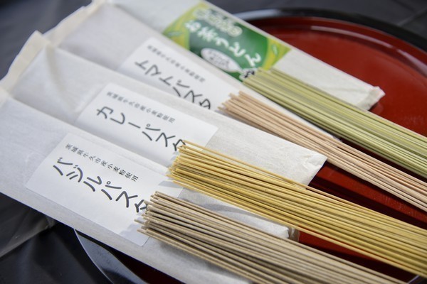 つくばみらい市の『青木製麺』では、自然の素材を混ぜて風味付けした特色のある乾麺を製造・販売しております。小麦粉は国産小麦を使用し、蕎麦は県産の常陸秋そばを使用しています。