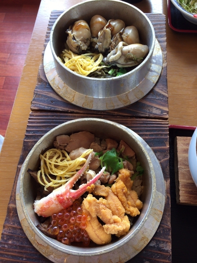 海沿いの道にある釜めし屋さんです。正午の少し前におじゃましました。期間限定のオススメ牡蠣釜飯を注文。最初にサラダ、茶碗蒸し、小鉢、おしんこ等が運ばれてきて食べはじめてから少しして出来立ての釜飯が登場。プリプリの牡蠣が食欲をそそりボリュームはありましたが、気がついたら完食(笑)正午すぎてからお客さんはどんどん来店してきて人気のたかさがわかります。3月からの限定釜飯も気になりました。また足を運んで色んな釜めしを食べたいと思います。